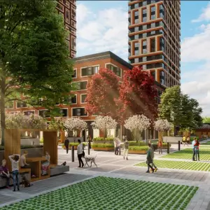 Данное пространство может быть использовано для проведения деловых встреч, мероприятий и для работы с ноутбуком на свежем воздухе. Вдоль променадов будут открыты более 70 магазинов, ресторанов и кафе.