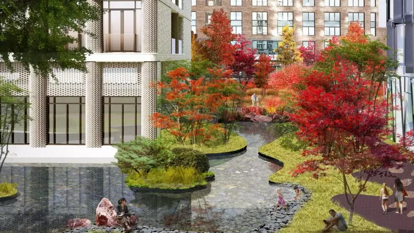 Дворовое пространство 2 очереди, где строится клубный дом Noble и премиальный небоскреб Famous, разделится на пять тематических зон — каждая из них обладает своей центральной функцией, но все гармонично дополняют друг друга. Такая необычная ландшафтная планировка формирует новую форму общественного пространства, предоставляя жителям комплекса возможности контакта с природой.