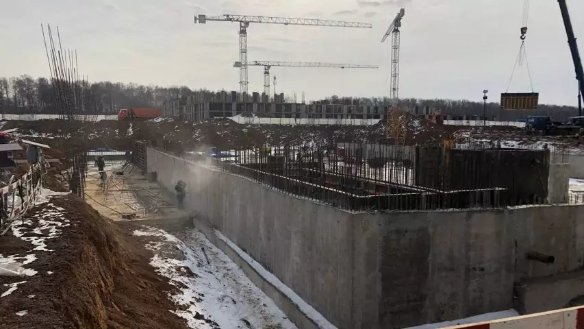 В ЖК ЭкоБунино от ГК МИЦ продолжается активное строительство образовательного комплекса на 1025 мест. На данном этапе ведутся монолитные работы подземной части здания.