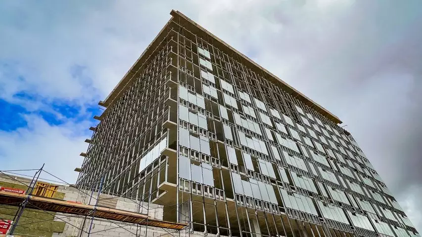 ГК А101 на 95% завершила кладочные работы по устройству внутренних и внешних стен, а также работы по устройству кровли в бизнес-квартале Прокшино.