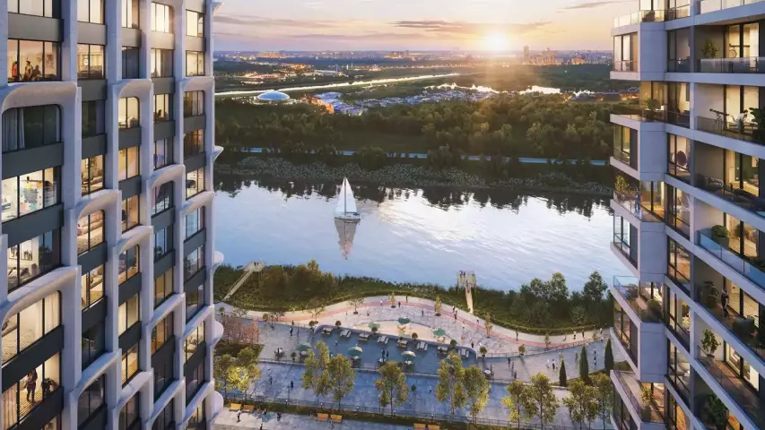 Четыре корпуса переменной этажности от 10 до 22 этажей рассчитаны на 518 квартир общей площадью более 35 тыс. кв. м. Они будут находиться на первой линии у реки рядом с причалом речного транспорта, что позволит резидентам сочетать деловую активность с курортным образом жизни. Площади и функциональные планировки квартир варьируются от эргономичных студий в 28 кв. м до просторных 5-комнатных квартир в 160 кв. м, среди которых есть и редкие форматы: с окнами «в пол», окнами в ванных, террасами, угловым остеклением, возможностью установить камин.