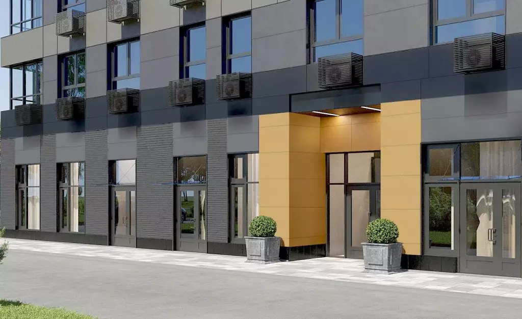 Для Дома на Студенческом разработан индивидуальный проект в стиле современной европейской архитектуры. Минималистичный внешний облик новостройки отличают светлые лаконичные фасады, украшенные цветовыми акцентами. Здание имеет одноэтажный стилобат, в котором разместятся инфраструктурные объекты и коммерческие заведения. Во входной группе предусмотрены ресепшен-зона консьерж-службы, гостевая зона, колясочная. Подземный уровень займет паркинг на 137 машино-мест.