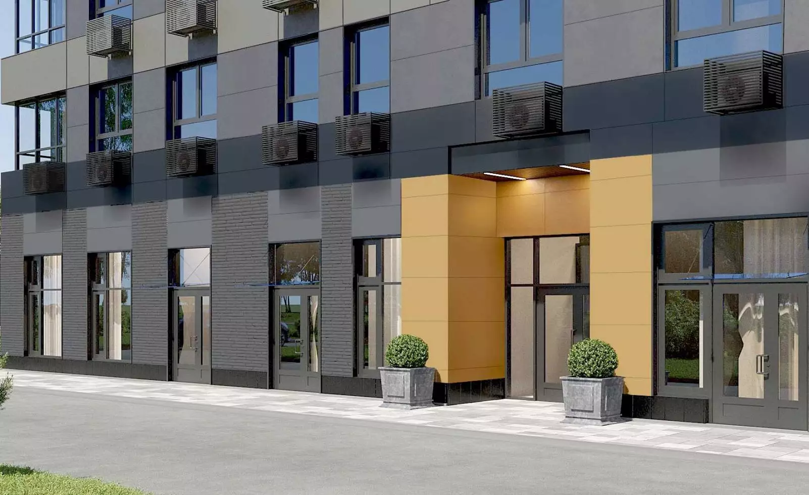 Придомовая территория новостройки будет озеленена и благоустроена. В закрытом дворе без машин спроектированы детские игровые и спортивные площадки, места для отдыха. За периметром выделено 31 машино-место для открытой парковки автомобилей. Первый этаж отдан под стрит-ритейл и сервисы. Все необходимое есть поблизости, в шаговой доступности работают:
