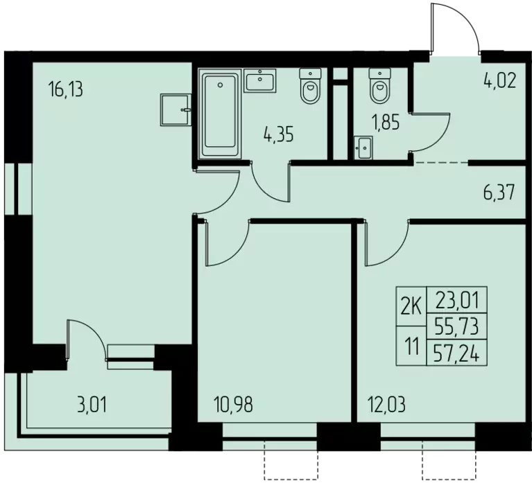 Покупателям жилья предлагаются различные варианты планировок с одной-тремя комнатами, в том числе студии, площадью от 28 до 88 м² с потолками высотой 2,75 м. Застройщик передает все лоты с предчистовой отделкой white box.