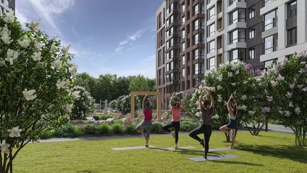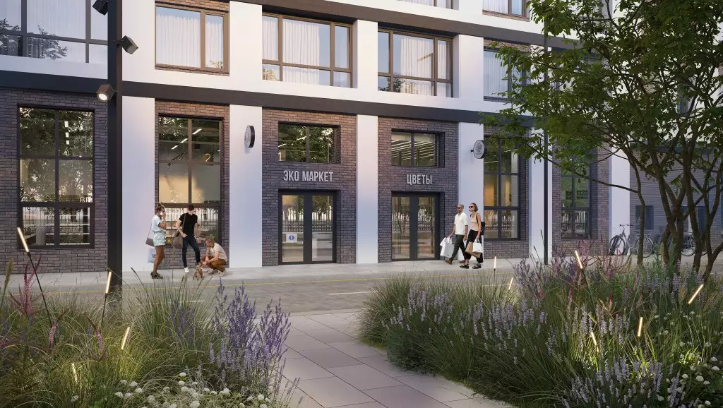 Охраняемая придомовая территория новостройки будет закрыта для проезда машин и прохода посторонних лиц. Для стоянки автомобилей кроме подземного паркинга предусмотрены наземные машино-места за дворовыми пределами. Проект благоустройства предусматривает ландшафтное озеленение, оборудование рядом с домами лаунж-зон для отдыха; площадок для детских игр и занятий различными видами спорта, воркаутом, йогой; мест для выгула собак. На первых этажах корпусов откроются магазины, пекарни, кафе, аптеки, зоомагазины, салоны красоты и другие сервисные заведения. В пешей доступности рядом с жилым комплексом работают социальные, торговые и сервисные объекты: