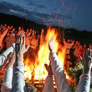 Из цветов и разных трав девушки плетут венки и отпускают их на воду. Чем дольше плывет венок и горит оставленная в нем свеча, тем счастливее будет жизнь.