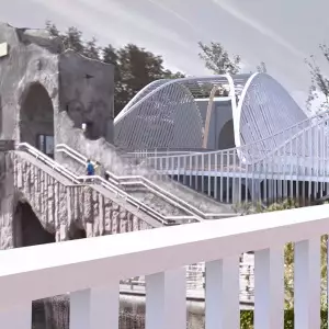 Ширина мостового перехода, соединяющего «старую» до «новую» территории Московского зоопарка, планируют увеличить с 4 до 9 метров. Внешне он будет выглядеть как огромная волна, поднимающаяся, закручивающаяся и вот-вот готовая накрыть посетителей. Такого оригинального эффекта позволит достичь использование ограждающих конструкций из легкого алюминиевого сплава.