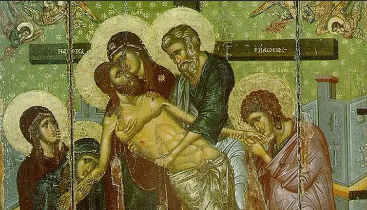На вечерне, при пении тропаря: «Благообразный Иосиф с древа снем пречистое Тело Твое...», священнослужители поднимают Плащаницу (то есть изображение Христа, лежащего во гробе) с Престола, как бы с Голгофы, и выносят ее из алтаря на середину храма в преднесении светильников и при каждении фимиамом.