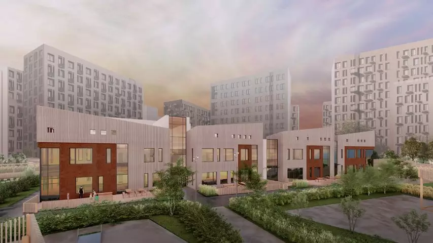 Согласно проекту, внутри здания также оборудованы спортивный и музыкальный залы, медицинские кабинеты и кухня полного цикла.