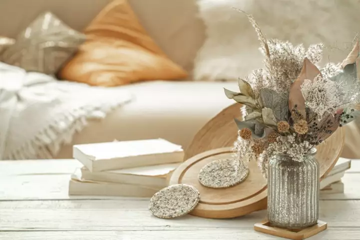 природа в доме, это могут быть живые цветы и другие растения либо качественная имитация настоящей зелени и натуральных материалов;