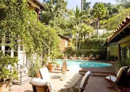 Дом в испанском стиле спрятан за плотной стеной из фикусов. Заросли глицинии и бугенвиллии обвивают двери и балконы виллы. Кроме того, особняк может похвастать витой лестницей и ванными в стиле ар-деко. Кухня и комната для завтрака выходят окнами на внутренний дворик и бассейн