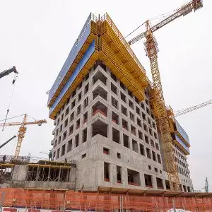 Как уточняет руководитель Департамента развития проектов ЗАО «Дон-Строй Инвест» Станислав Архипов, самая высокая динамика монолитных работ наблюдается на первом корпусе квартала «Сердце Столицы», где используется система «скользящей» опалубки RCS rail climbing system (производство компании PERI, Германия). «Строителям не приходится выполнять постоянный монтаж и демонтаж опалубки, что позволяет обеспечить оптимальную скорость производства работ – на сегодняшний день мы вышли на уровень восьмого жилого этажа».