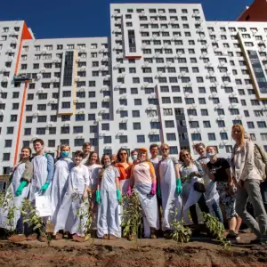В ЖК Румянцево-Парк от компании Lexion Development, который строится в Новой Москве, в 3 км от МКАД по Киевскому шоссе, ст. метро «Саларьево», состоялось мероприятие для дольщиков, приуроченное к специальной акции «Посади свое дерево».