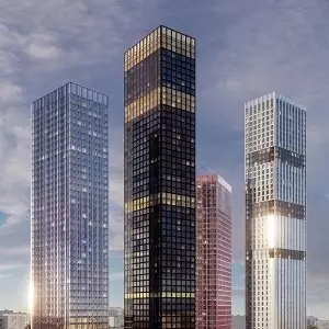 Symphony 34 от MR Group — жилой комплекс бизнес-класса на севере Москвы, состоящий из четырех башен (от 36 до 54 этажей), с закрытым двором и поддержкой концепции «вертикального города». Для каждой из башен выбрано свое визуальное решение, названия корпусов отражают выбранный материал фасадов: Graphitе, Crystal, Silver и Siena. Дизайн-проекты лобби жилого комплекса разработаны Jaime Beriestain, одной из известнейших международных архитектурных студий.