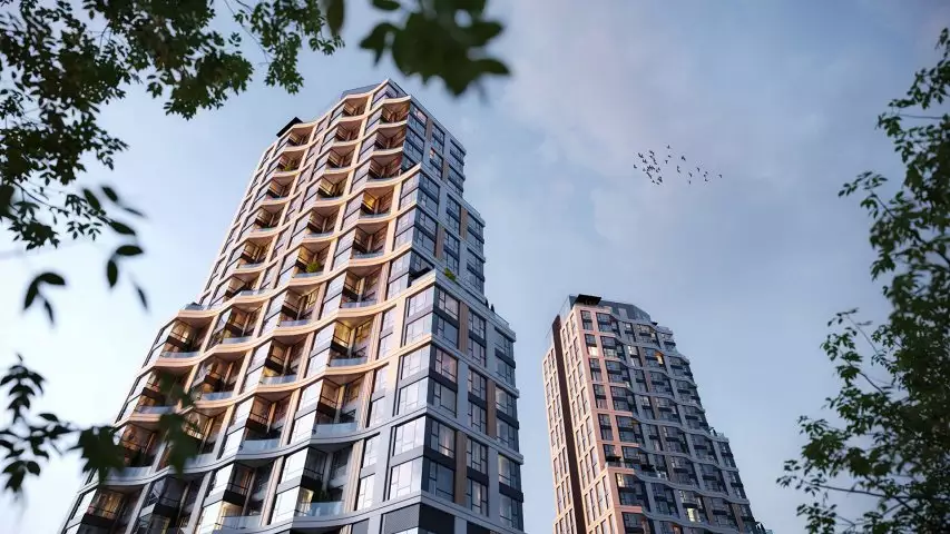 Архитектурное решение включает «танцующие» волнистые фасады, которые помимо декоративной функции, обеспечивают жильцам практически полную приватность: для балконов и террас применён метод углового проектирования, благодаря чему жители соседних квартир не увидят друг друга. Во всех квартирах предусмотрены панорамные окна с углом обзора до 270 градусов – это весьма редко встречается на московском рынке девелопмента.