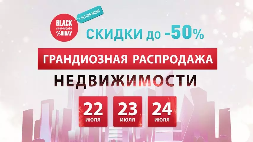 Black Friday Real Estate, крупнейшая ежегодная онлайн-распродажа объектов недвижимости пройдет в Москве в восьмой раз. С 22 по 24 июля 2022 на сайте www.refriday.ru Более 20 крупных московских застройщиков предложат покупателям рекордные скидки. «Черная пятница рынка недвижимости» - уникальное явление – подобных акций нет ни в одной другой стране. В 2020 году за три дня акции москвичи забронировали недвижимости на 11 млрд рублей!