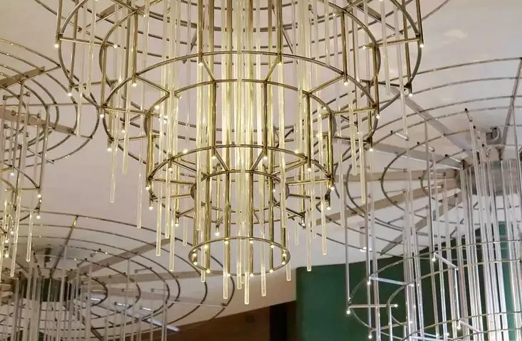 Все светильники имеют разный размер. Диаметр самого миниатюрного составляет около 1 м, а самого крупного – почти 3 м. Масса люстр – от 15 до 50 кг. Параметры были рассчитаны инженерами МКЗ при помощи специальной BIM-программы.