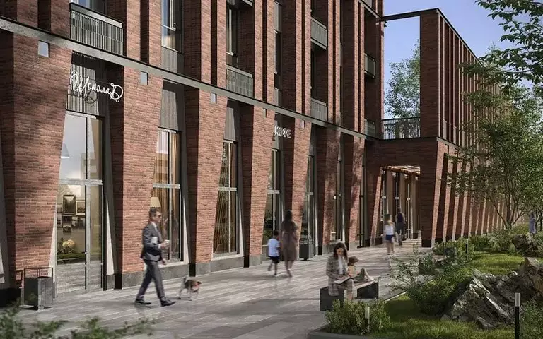 Весь квартал имеет единый архитектурный код – стиль новомосковской архитектуры с использованием натурального кирпича в отделке фасадов. Все дворы квартала – это каскад разноуровневых парков для прогулок и отдыха.