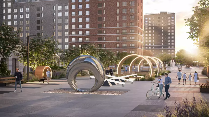 Для центральной аллеи нового жилого квартала ландшафтные дизайнеры выбрали клен, шаровидную иву, жимолость и кизильник. Цветники сформируют на основе многолетних трав: тысячелистника, эхинацеи, шалфея и очитка.
