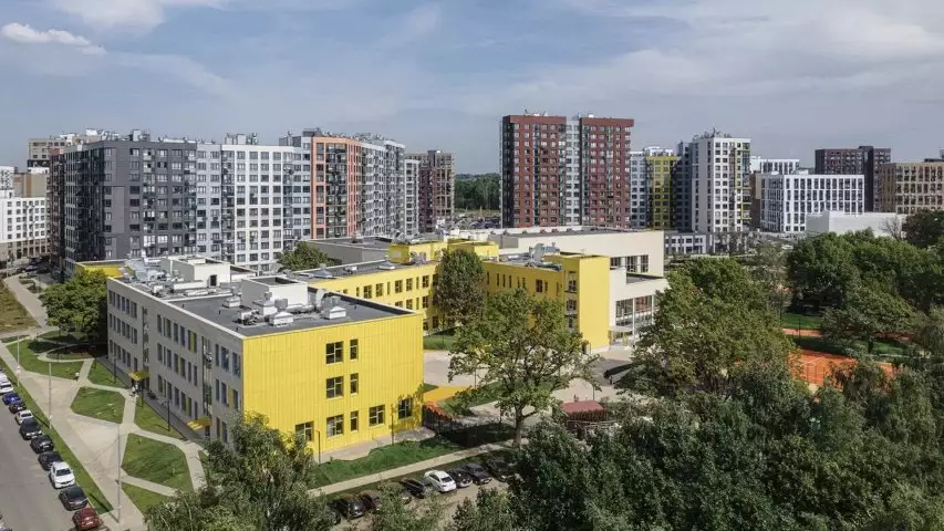 Школа Энергия, построенная в рамках проекта ЖК Скандинавия, рассчитана на 1325 учеников. Здание органично интегрировано в существующий ландшафт с сохранением экосистемы территории. Школа построена вокруг нескольких многолетних дубов. Одна из фронтальных стен буквально огибает дерево по радиусу, а изломанные контуры всего здания призваны не только сберечь деревья на участке, но и сформировать функционально-пространственное планирование всего объекта.