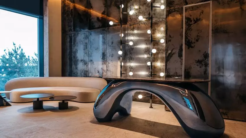 В лобби City Bay собраны разработанные специально для проекта дизайнерские элементы и предметы. Так, по эскизам Jaime Beriestain Studio изготовлены не только декоративные стеновые панели, но также светильники, зеркала и консоли с мраморными столешницами. Авторская мебель из дуба с отделкой из натуральной кожи и бельгийских тканей создавалась на российских фабриках.