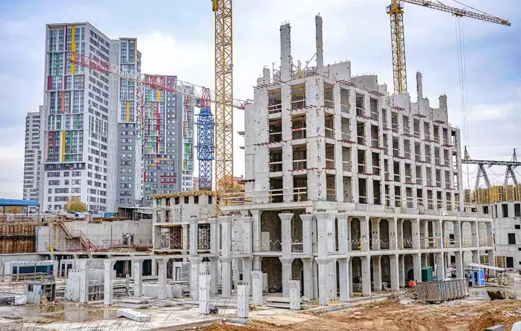 В домокомплект 7-го жилого корпуса входят такие индустриальные изделия, как стены наружные и внутренние, балки и плиты перекрытия «филигран». Уже сейчас строители приступили к возведению 6-го этажа корпуса и через три месяца планируют закончить монтаж конструктива десятиэтажного дома.