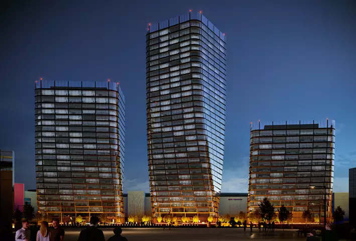 Архитектурный проект бизнес-центра, а также концепцию благоустройства разработало бюро ADM architects. В состав нового проекта общей площадью 130 тыс. кв. м войдут три башни сложной изогнутой формы. Динамичный силуэт композиции образован за счет плавного поворота фасадов вокруг центральной оси и разновысотности зданий. В центре расположится доминанта в 34 этажа, и с двух сторон корпуса пониже - 21 и 14 этажей. Благородное сочетание моллированного стекла и металла на их фасадах обуславливает выразительность и визуальную легкость. Благодаря витражному остеклению все помещения будут пронизаны солнечным светом.