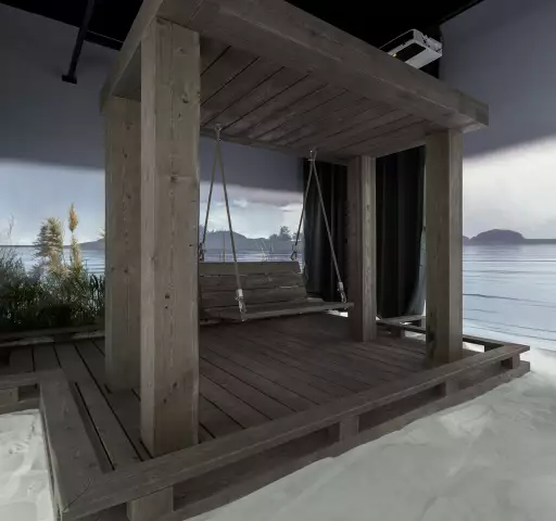 Архитекторы Basis перенесли в стены Гостиного двора, где проходила выставка, фрагмент набережной, уютный уголок для отдохновения разума, с качелями и поэтичными речными видами. Реалистичности выстроенному пространству добавили живые растения, террасная доска, качественный видео-арт и умиротворяющие звуки природы. Все это создавало условия для глубокого расслабления.