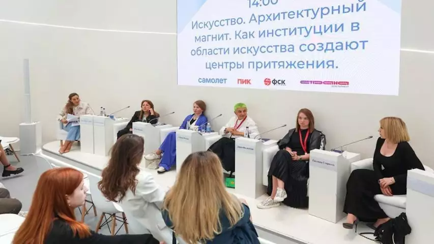 На площадке «Росконгресс Урбан Хаб» собрались представители архитектурного сообщества и культурных институций, среди которых: основатель школы Masters Полина Бондарева, директор фестиваля «Архстояние», управляющий партнер арт-парка «Никола-Ленивец» Юлия Бычкова, генеральный директор центра Зотов Дарья Филиппова и арт-директор платформы САБСТАНЦИЯ Сабина Чагина.