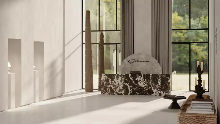 Концепция лобби OPUS создана на основе идеи о тотемах – «защитниках» и «стражах» дома. В светлом пространстве с высокими потолками до 7 метров разместятся арт-объекты из дерева, камня и металла. Их образы вдохновлены экспозицией Музея Африки. В сочетании с авторской мебелью от Дениса Милованова они сформируют умиротворенную атмосферу.