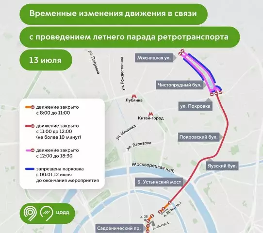 Как сообщили в Дептрансе, движение 13 июля 2024 г. будет перекрываться следующим образом: