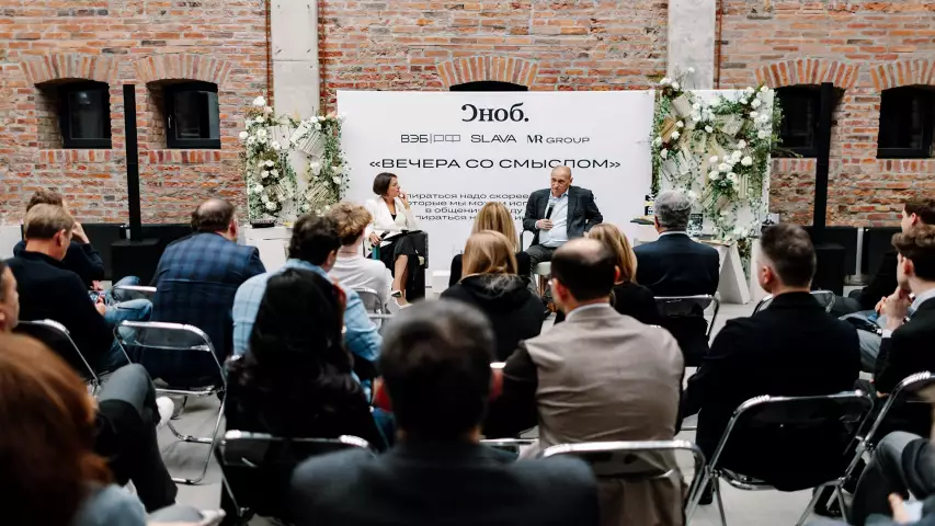 Именитые гости третьего по счету «Вечера со смыслом» на несколько часов превратились в студентов экономического факультета МГУ, жадно внимающих искрометной лекции декана Александра Аузана. Закрытые встречи «Сноба» проходят при поддержке знаковых проектов девелопера MR Group. Партнером минувшего вечера выступил премиальный городской квартал SLAVA*, который девелопер MR Group реализует совместно с ВЭБ.РФ.
