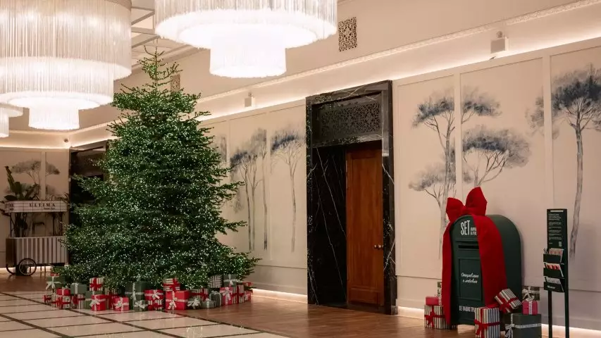 Команда SET привнесла в стены Художественного не только атмосферу волшебства, но и позаботилась о новогоднем декоре интерьеров. Центральное место в фойе Большого зала заняла празднично украшенная ель. Преобразилась и лаундж-зона вокруг фонтана — место встреч поклонников киноискусства: на круглом диване появилась вышивка с надписью названия жилого квартала, а неподалеку — стойка с открытками и тот самый почтовый ящик SET «Отправлено с любовью».