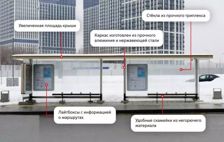«Новые остановки изготовлены из прочных и износостойких материалов. Каркас сделан из алюминия и нержавеющей стали, скамейка — из негорючих материалов, стёкла — из прочного триплекса, который при повреждении не разлетается на осколки, - рассказали в телеграм-канале Департамента Москвы. - Все павильоны — с увеличенной площадью крыши, информационными лайтбоксами. Предусмотрено видеонаблюдение и освещение. Они оформлены в едином стиле».