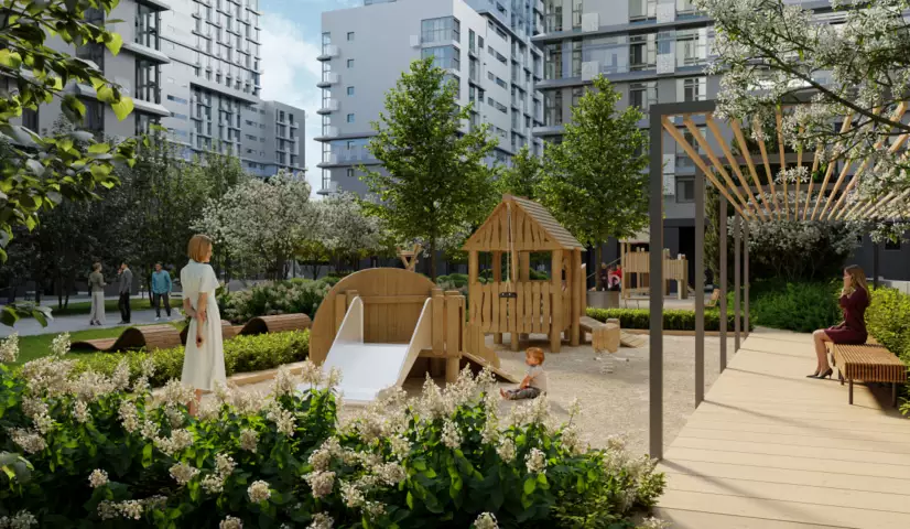 «Ландшафтный дизайн проекта разработан по принципу «Парк на пороге дома». Это двор-сад с разнообразными растениями, закрытый от машин. И территория насыщена функционалом. Внутри вписаны разновозрастные детские площадки из экологичных материалов с мягким покрытием, прогулочные зоны, места для отдыха с перголами, шезлонгами и гамаками. Также во дворе предусмотрены воркаут-зоны, площадка с теннисными столами, арт-объекты, малые архитектурные формы. При этом все увязано воедино продуманными дизайнерскими решениями», – рассказывает директор по развитию компании Plus Development Дмитрий Можаров.