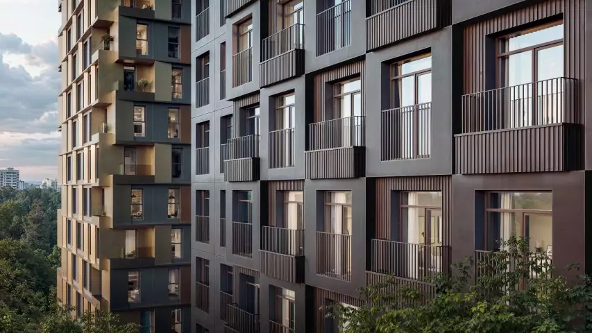 Нарвин — камерный квартал с продуманной архитектурой от российского бюро GAFA. Идея проекта — в сочетании разных приёмов: оригинальные сетки фасадов дополнены контрастными вставками и выразительными деталями.