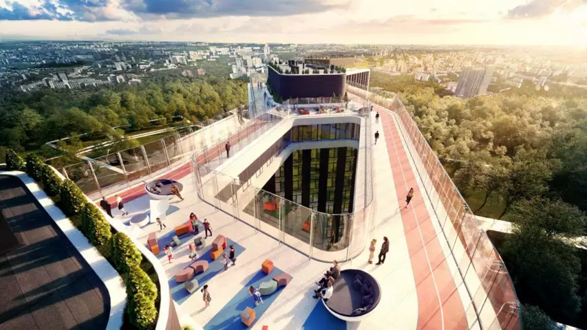 В составе двух корпусов четвертого События запроектировано 1 110 квартир площадью почти 80 тыс. кв. м. Мосты и небесный парк на крыше станут уникальным местом для отдыха, работы и спорта: здесь будут прогулочные и беговые дорожки, тренажеры, зеленые лаунж-зоны с мобильной мебелью. Приватный парк на крыше доступен только для жителей События. В нем можно будет наслаждаться видами и проводить досуг круглый год.