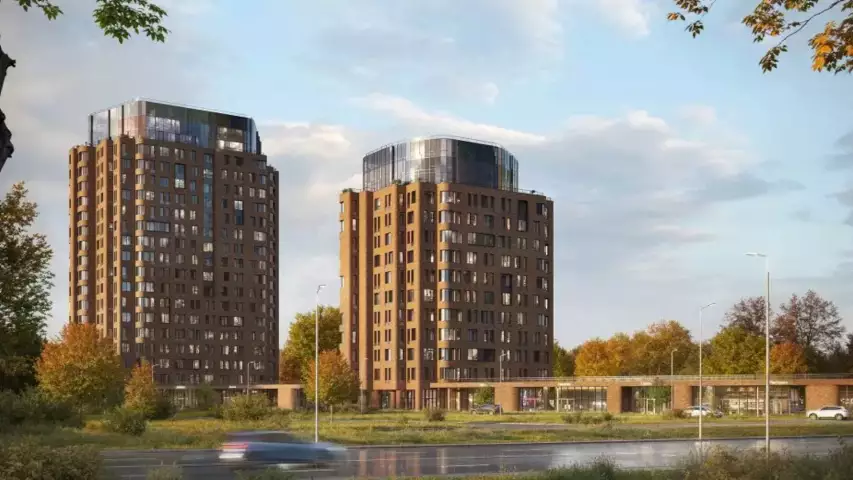 Дом состоит из трех жилых корпусов: 12, 18 и 43 этажей. Они отличаются необычной архитектурой: высокое здание застеклят разноцветными витражами, а фасады низких облицуют премиальным клинкерным кирпичом. Такое решение вдохновлено творчеством нидерландского художника Пита Мондриана.