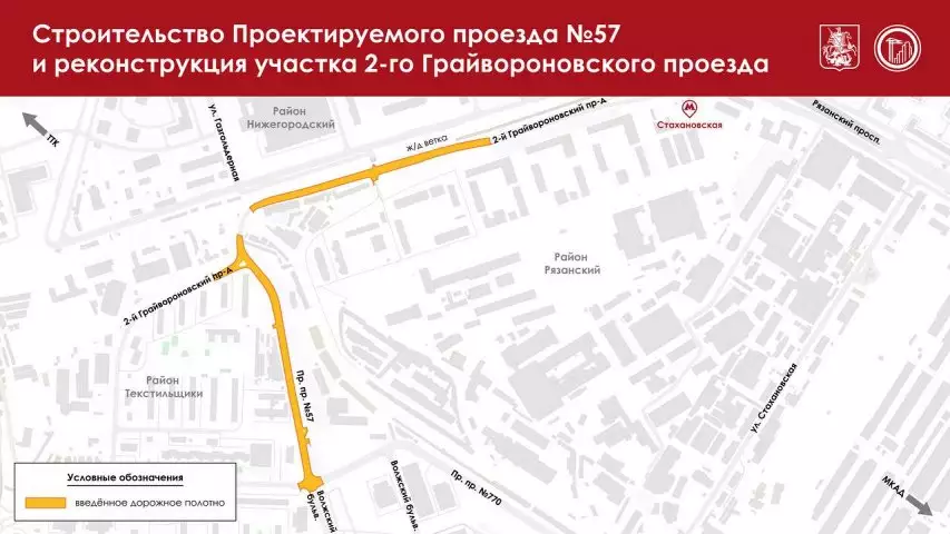 На карте недвижимости Москвы появился новый важный транспортный объект – дорога в районе Текстильщики. Накануне открыли движение по Проектируемому проезду № 57, который напрямую связал Волжский бульвар со 2-м Грайвороновским проездом.