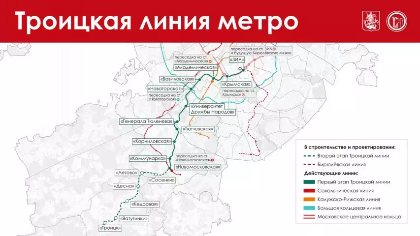 Стартовало строительство второй очереди Троицкой линии Московского метрополитена. Она продлится от «Новомосковской» до «Троицка».