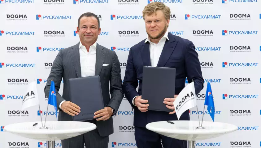 Федеральная компания DOGMA и торгово-производственный холдинг Русклимат подписали соглашение о стратегическом партнерстве. Документ предусматривает комплексное оснащение системами отопления, кондиционирования и вентиляции производства Русклимата жилых проектов застройщика в пяти регионах России. Соглашение подписали президент DOGMA Денис Морозов председателем Совета директоров холдинга Русклимат Михаил Тимошенко.