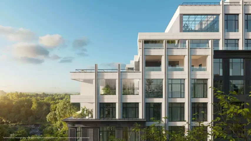 Высота потолков составит до 3,65 м в квартирах и до 4,55 м — в пентхаусах. Просторные террасы и лоджии, окна в ванных комнатах, зимние сады и дровяные камины в лотах на верхних этажах. Одна из секций целиком состоит из квартир с авторской отделкой под ключ. Здесь используются премиальные отделочные материалы, итальянские кухни элитных марок, встроенная бытовая техника и сантехника ведущих европейских брендов.