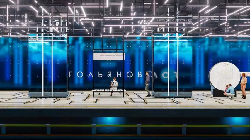 Внутренний дизайн станции «Гольяново» будет выполнен в космическом стиле. Основным материалом для отделки выбран отечественный металл высокого качества.