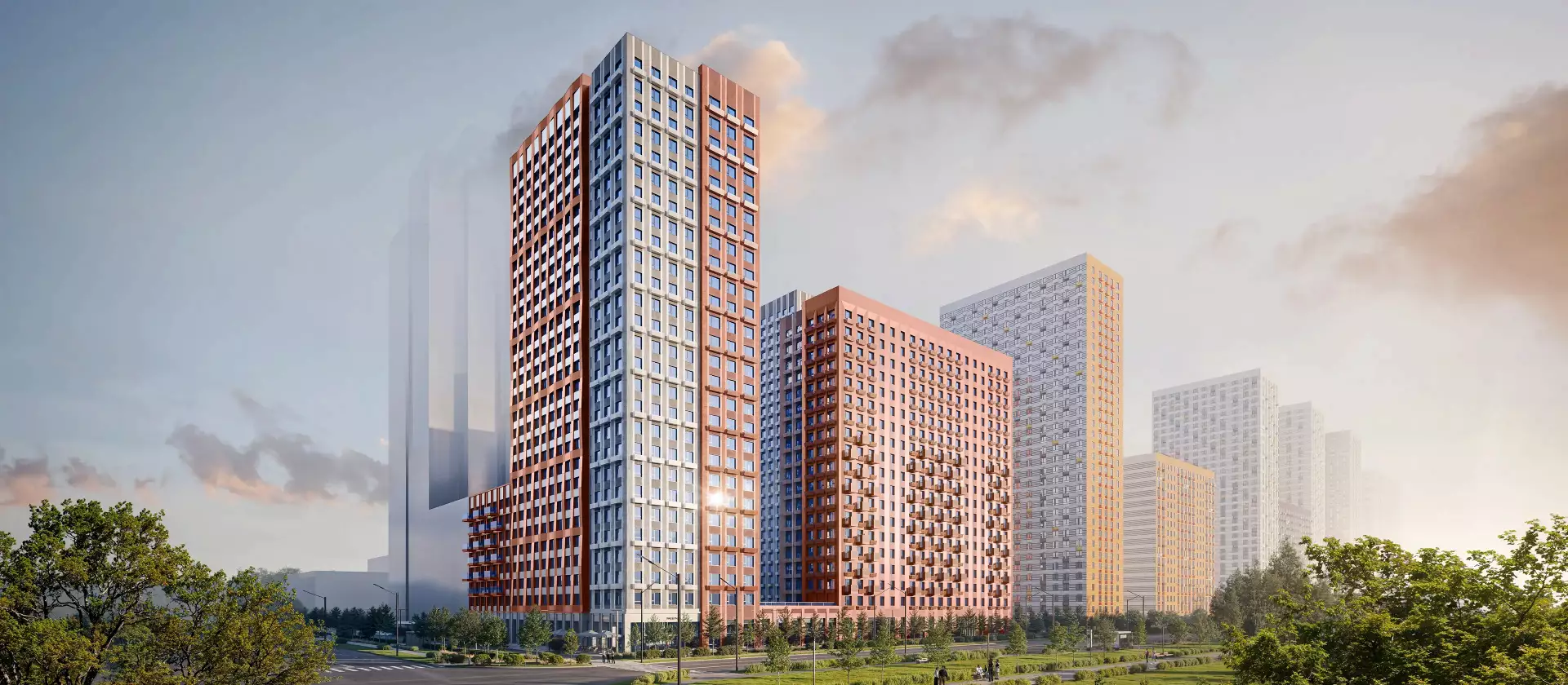 Жилой комплекс Амурский парк — проект «Серии плюс» на востоке Москвы, возводится в Восточном административном округе на территории района Гольяново. В состав комплекса войдут 15 жилых домов комфорт- и бизнес-класса высотой от 17 до 33 этажей. Часть корпусов уже построена и заселена, здесь можно купить готовую квартиру и сразу переехать. В квартале будет всё для комфортной жизни: квартиры с готовой отделкой и видом на Измайловский парк, уютные дизайнерские лобби, подземный паркинг, торговые галереи на первых этажах и свой детский сад с бассейном. Квартал от мастерской M. A. M. отражает уникальный архитектурный почерк и органично дополняет городской ландшафт. В основе концепции — принцип сомасштабности человеку, благодаря чему внутри проекта формируется комфортное и гармоничное пространство для жизни. Квартал представлен разновысотными корпусами в минималистичном стиле. Образ строится на сочетании мягких пластичных линий и строгих геометрических форм. Рельефные детали в виде вертикальных металлических ламелей добавляют зданиям объём и глубину, делая архитектуру более выразительной. Цветовая гамма фасадов построена на контрасте терракотового и молочно-серого оттенков, которые создают атмосферу тепла и уюта.