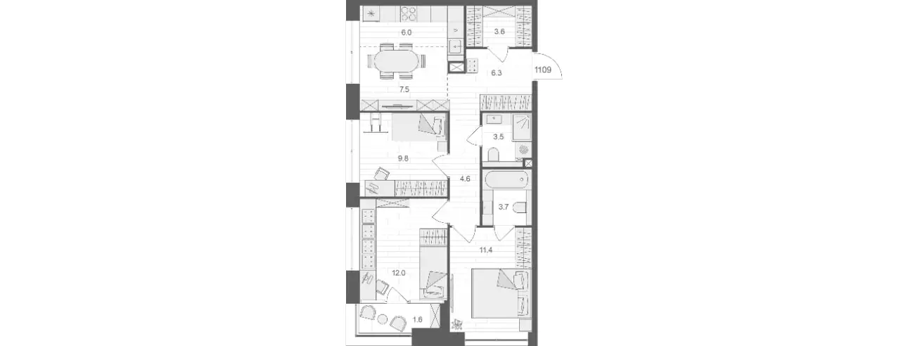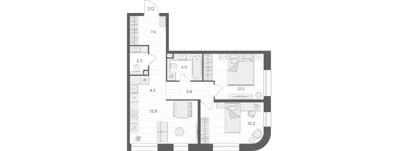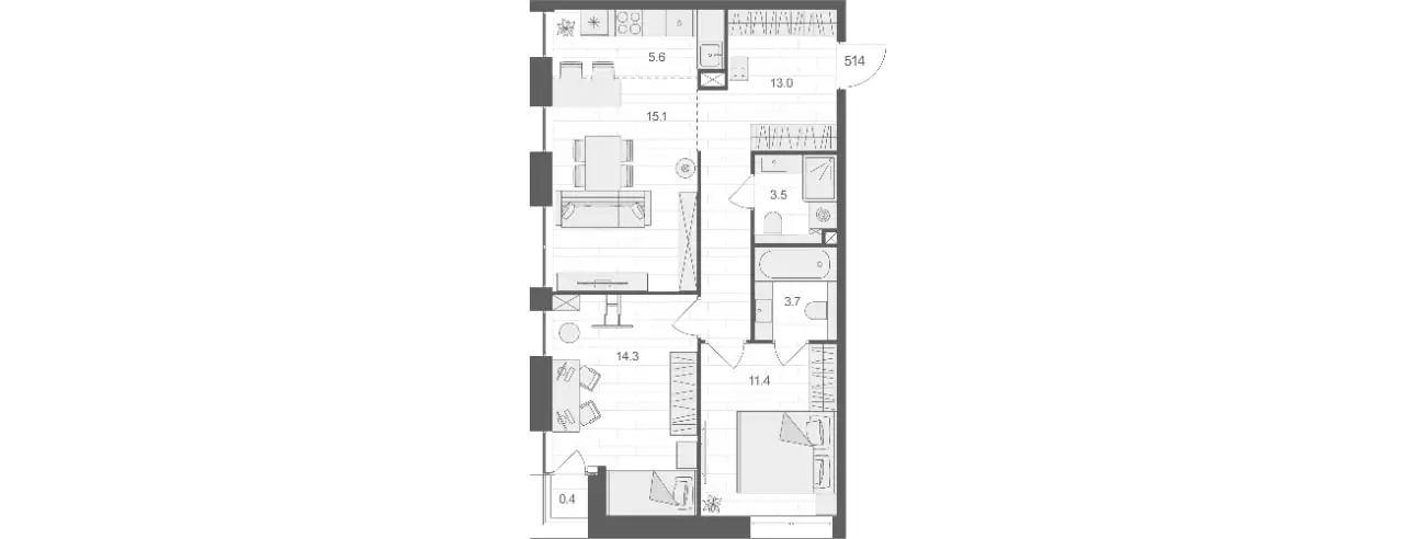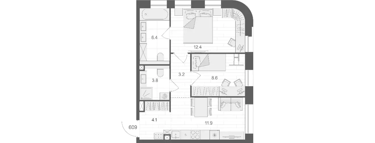 Покупателям жилья предлагаются варианты классических и европланировок площадью от 24,9 до 90 м² с одной-тремя комнатами, включая студии, с потолками высотой от 3,25 м на типовом этаже. Можно приобрести лоты с собственными террасами и лоджиями, мастер-спальнями, кухнями-столовыми, гардеробными и постирочными. Высота потолков в квартирах на верхних этажах — 3,78 м. В одном корпусе все квартиры застройщик передает с двумя вариантами премиальной чистовой отделки и установленной сантехникой, в другом — с черновой отделкой.