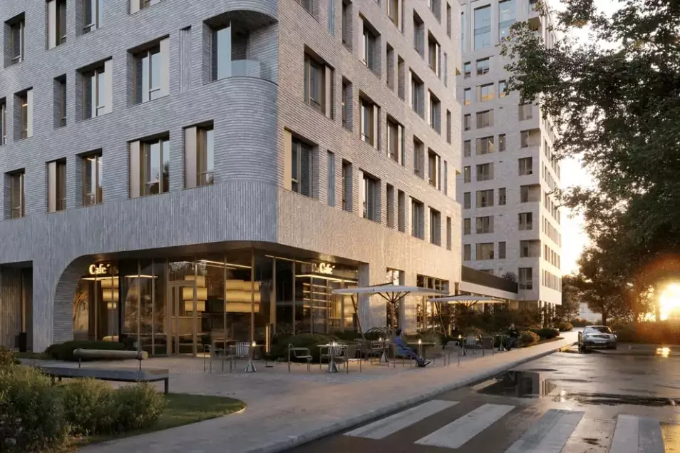 Застройщик возводит здания по монолитно-кирпичной технологии. Фасады облицуют клинкерным кирпичом разных оттенков серого цвета. Комплекс оборудуют передовой инженерией, в том числе системой видеонаблюдения 24/7, системой бесконтактного доступа для резидентов, Face-ID и бесшовным wi-fi. На этажи и в паркинг новоселов будут доставлять малошумные лифты.