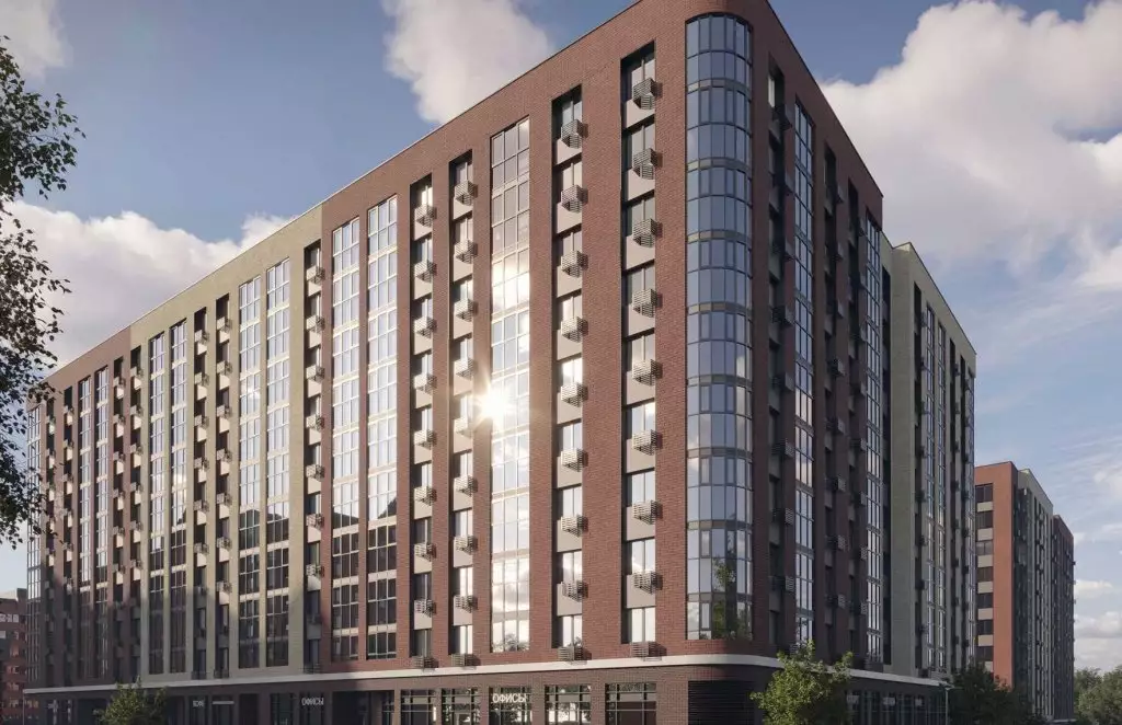 Концепция новостройки разработана с учетом гармонии с природным окружением. Архитектурный стиль отличается элегантной сдержанностью, подчеркнутой элементами классической архитектуры. В конструкции домов выделяются крупные оконные проёмы, среди которых есть угловые панорамные окна. Они визуально расширяют пространство и делают квартиры светлыми за счет обилия естественного освещения. Фасады решены в теплой цветовой гамме, где доминирует красновато-коричневый кирпичный тон. Его дополняют вставки более светлых и глубоких темных оттенков, которые создают интересные акценты и придают фасаду многоплановость. Композицию поддерживают декоративные элементы, расположенные по вертикали и горизонтали, которые формируют чёткий ритм и добавляют архитектуре выразительности. Верхние этажи выделены выступающей отделкой, завершающей силуэт и придающей комплексу цельность. Образ дома формируется в сочетании простоты и рациональности. Архитектура производит впечатление строгости, но гармоничное использование материалов и пропорций делает её выразительной и привлекательной.