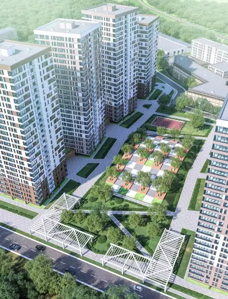 На охраняемой и закрытой территории, свободной от машин, будет организовано озеленение с использованием ландшафтных решений. Проложат прогулочные дорожки из тротуарной плитки, создадут уютные зоны для отдыха, игровые пространства для детей и специально отведенные места для выгула собак. Кроме того, здесь появятся площадки для волейбола и баскетбола, а также уголки для занятий воркаутом. В состав встроенной инфраструктуры квартала войдут: