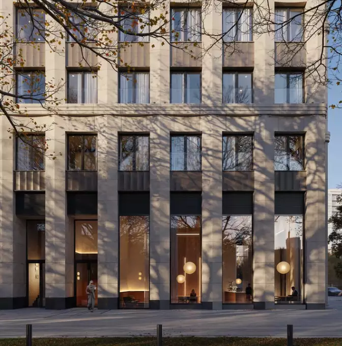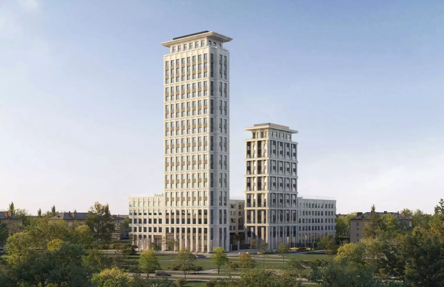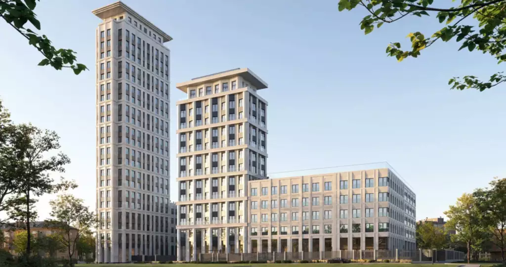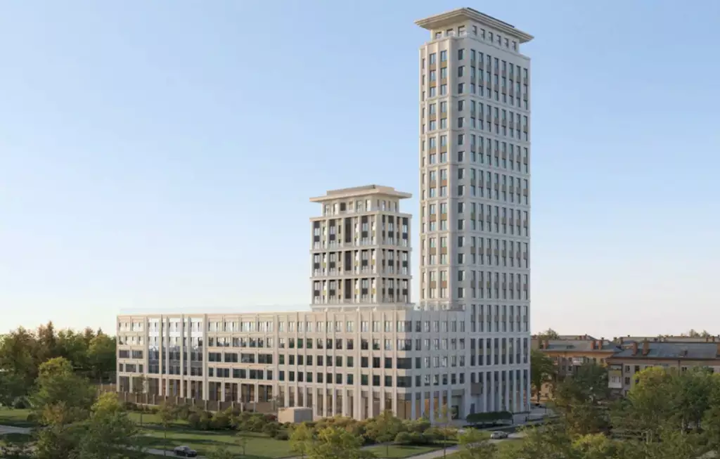 Архитектурная концепция "Дом на Часовой" разработана известным столичным бюро SPEECH. В ней сочетаются современные решения и принципы классической архитектуры. Жилой комплекс включает семь секций высотой 5 этажей и две башни на 13 и 22 этажа, которые являются архитектурными акцентами. Они формируют визуальные доминанты и зрительно выделяют входную группу. В плане здание выполнено в С-образной конфигурации. Такое решение позволило сформировать замкнутый и приватный двор. В целом образ здания основан на строгих и монументальных формах. Симметрия фасадов усиливает ощущение порядка и уравновешенности. Объемный "карнизный" силуэт задаёт выразительную линию завершения. В результате сформирована цельная композиция, которая логично и уважительно продолжает неоклассическую застройку района. Каждая секция получила собственный характер. Фасады имеют индивидуальный рисунок. Пилоны, русты и развитые карнизы отсылают к традициям неоклассики. Сложная геометрия формирует ниши для открытых балконов и террас. Все элементы работают на визуальную целостность образа новостройки. Для отделки фасадов выбран фибробетон премиального уровня, устойчивый к агрессивной городской среде. Фирменные приемы мастеров SPEECH создают глубину фасадов и выразительную игру света. Палитра материалов выглядит благородно и сдержанно. Она отсылает к архитектуре старой Москвы и её спокойной респектабельности.