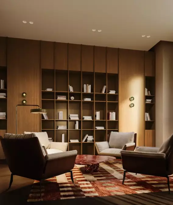 Места общего пользования в "Дом на Часовой" решены в нескольких форматах. Гранд-лобби с интерьером от студии Balcon разместится в девятой секции. Его пространство вдохновлено камерной атмосферой библиотек, чтобы подчеркнуть интеллектуальный характер данного интерьера. Это выражено в выборе материалов, мебели и декоративных деталей. В отделке используется натуральный шпон, латунь и стекло бутылочно-зелёного оттенка. Из лобби резиденты смогут пройти в уютную мини-библиотеку — культурное пространство, созданное совместно с легендарным книжным магазином Санкт-Петербурга "Подписные издания". Также в комплексе предусмотрена музыкальная комната с коллекцией виниловых пластинок и проигрывателем. Для детей выделена уютная игровая комната, а для работы и встреч спроектирован тихий коворкинг. Резидентам будут доступны стойка ресепшен с консьерж-сервисом 24/7, колясочная, зона хранения посылок, лапомойка для собак. На первых этажах появится торговая галерея с магазинами и сервисами. Подземный паркинг с дизайнерским интерьером рассчитан на 149 машино-мест. В его составе предусмотрены кладовые.